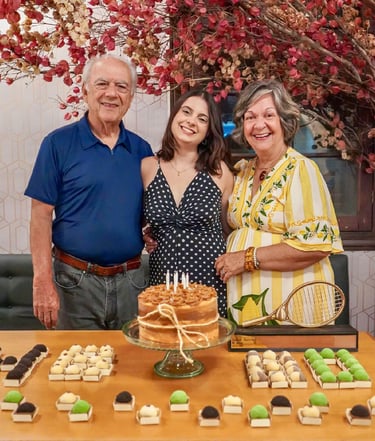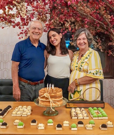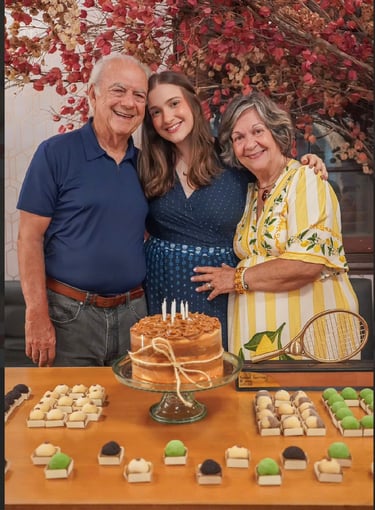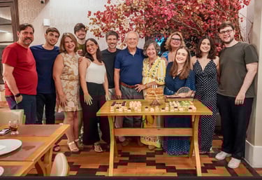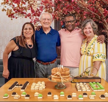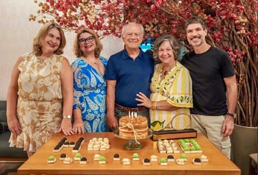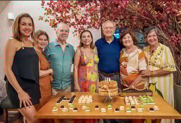 O núcleo familiar residente em Pernambuco se uniu para homenagea-lo presencialmente neste dia muito especial, aproveitando as presenças da neta Camilinha e da filha Monica, recém chegadas da Europa e China e que não puderam abraça-lo no dia 10 de abril.