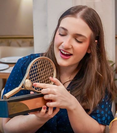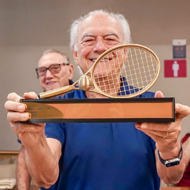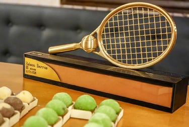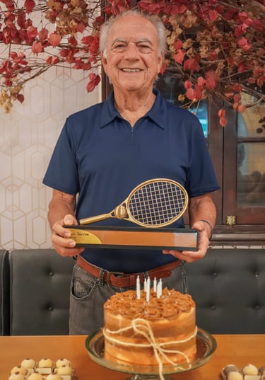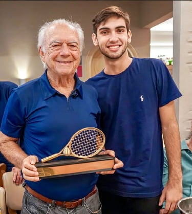 A belíssima arquitetura do troféu retrata a histórica Primeira Raquetada que Helson sempre orgulhosamente faz questão de contar aos amigos, acompanhado de sonoras gargalhadas. Bem, mas isso, só ele mesmo pode contar...