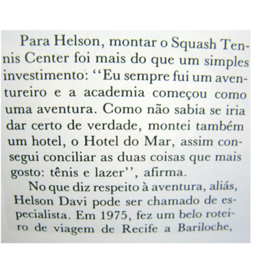 Para acompanhar o desenvolvimento tenístico de Davi tive que sair da Construtora Condic. Construí o Hotel do Mar (18 aptos) e o Squash Tennis Center (15 quadras de tênis e duas de Squash).