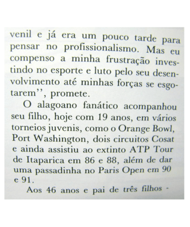 Vários torneios pelo nordeste como Copa Banco Econômico de Salvador e Cajú Bowl, em Recife, recebiam os melhores do país (Gustavo Kuerten jogava estes torneios na categoria até 14 anos).