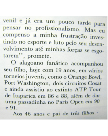 Na praia de Pajussara, em Maceió, realizava-se um torneio de tênis Challenger da Associação dos Tenistas Profissionais-ATP, em Novembro. Como convidado da promotora Tavaric, iniciei os primeiros contatos para trazer um evento daquele nível para Recife. Joguei o torneio Pro-Am (Um profissional e Um amador), formando duplas com Fernando Meligeni e indo até as finais.