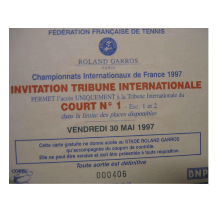 Planejei assistir um dia os jogos em Roland Garros em Maio de 1997. O problema era conseguir ingresso. O árbitro Carlos Ramos que nos visitara em Recife, prometera para a sexta da primeira semana, mas a ansiedade me fez tentar na quinta. Ao chegar ao hotel de Carlos, o mesmo já havia saído para o estádio.