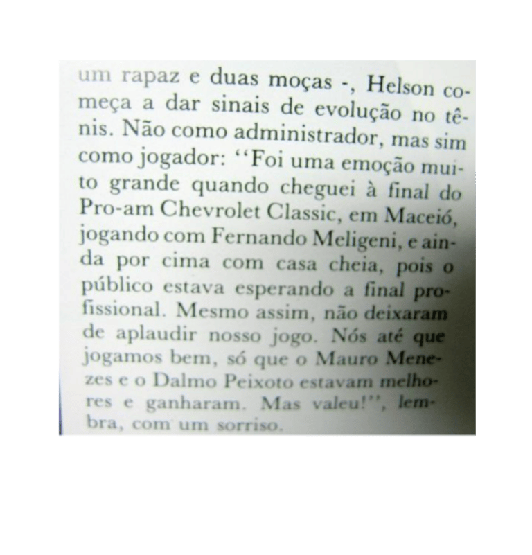 Em outubro, fomos a Ilha de Itaparica, no Clube Mediterranné, onde assisti meu primeiro torneio com a participação de tenistas profissionais, como Kyrmair, Cássio Mota, Luís Mattar e José Luís Clerk.